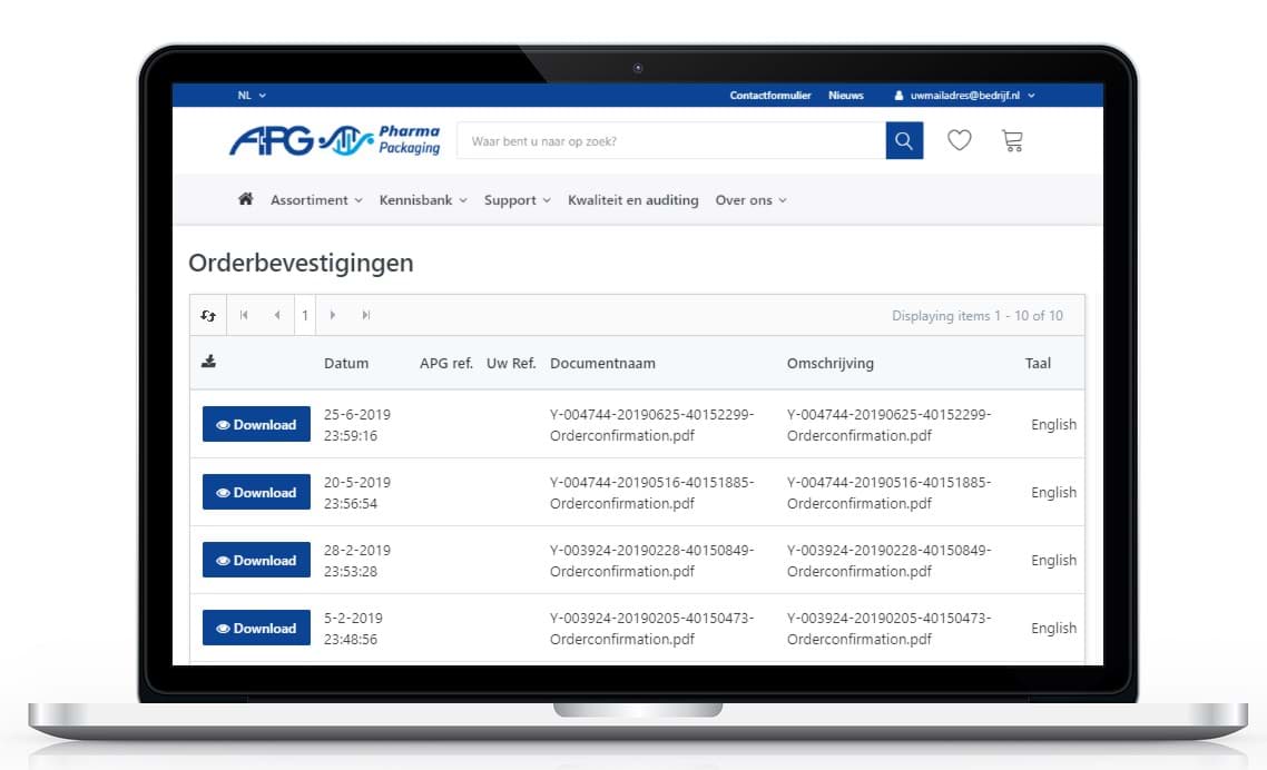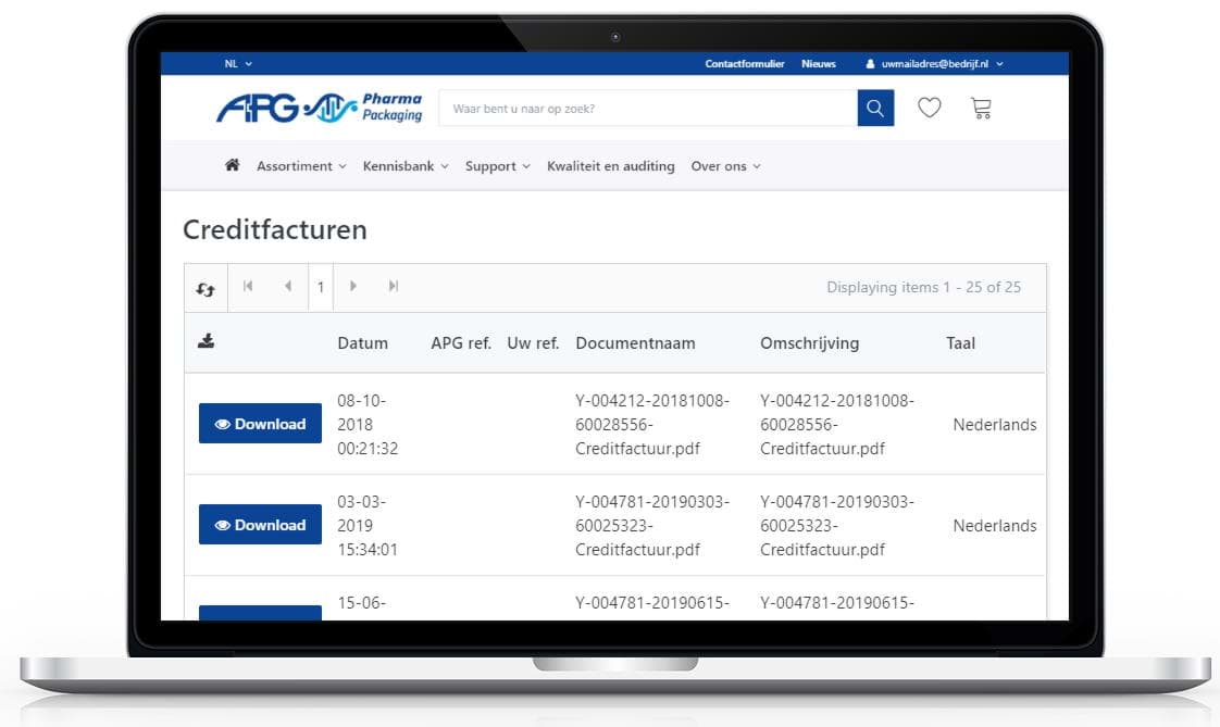 • Download uw offertes, orderbevestigingen, facturen, retourorders en creditfacturen