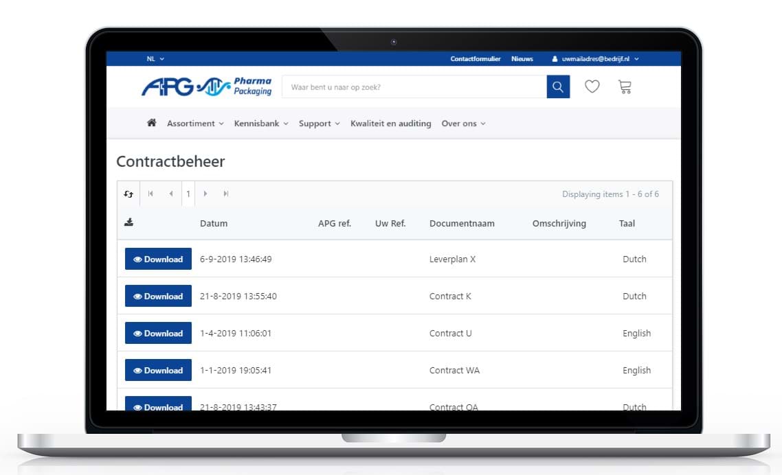 Compliancy is key. APG verzorgd toesturen van verschillende certificaten, waaronder KwaliteitManagement Systeem certificaten en product gerelateerde certificaten zoals analyse- en conformiteitscertificaten. Uw certificaten zijn vindbaar onder 'Certificaten' binnen de module Kwaliteit & Docs. Elk certificaat beschikt over de volgende extra gegevens: